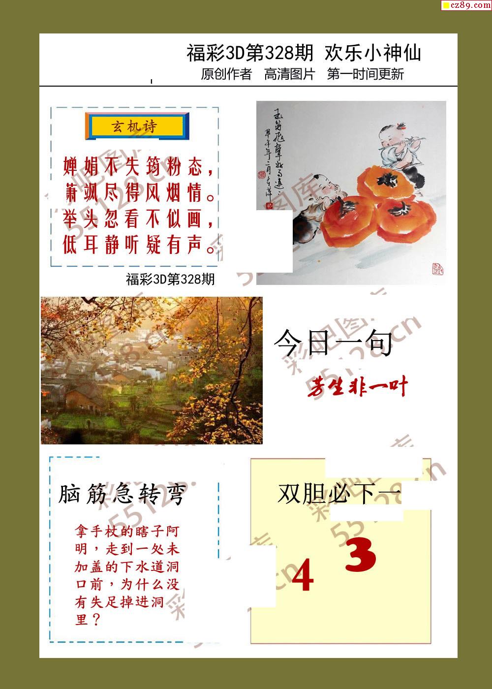 > 25年福彩3d328期欢乐小神仙预测图